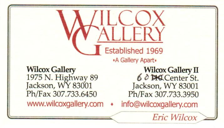 Meet Jim Wilcox…an excellent artist who created his own gallery. He now has two galleries, one on the highway 1 mile north of Jackson, Wyoming and one in town that is managed by his son Eric – who by the way is an excellent bronze sculptor. Please click on the Wilcox Gallery at