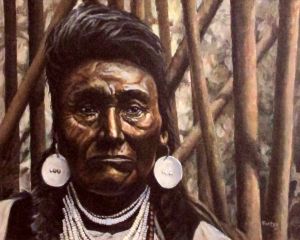 Oil painting that was created using a historic photo of Chief Joseph.