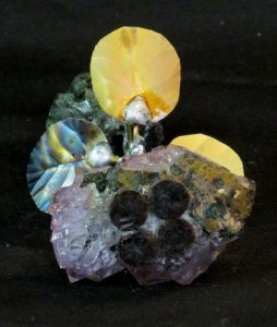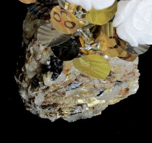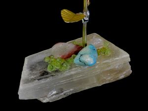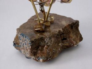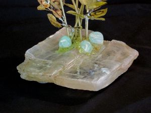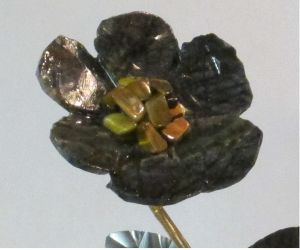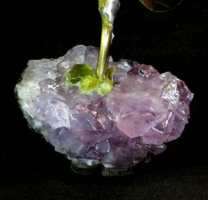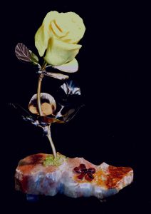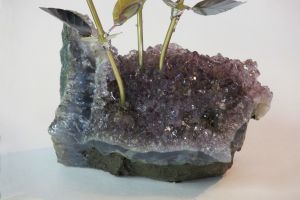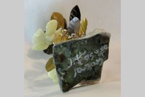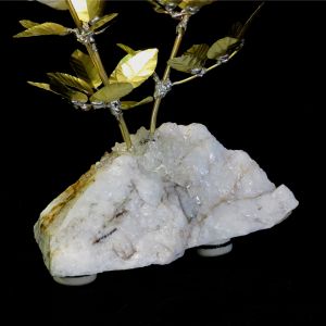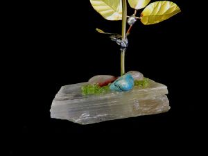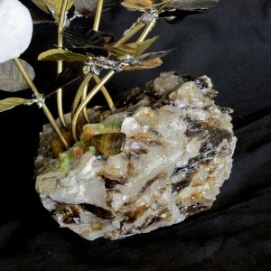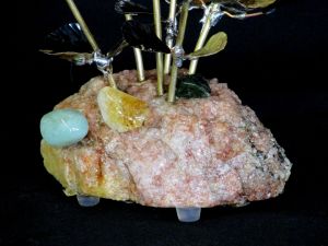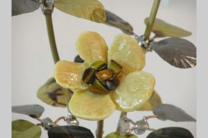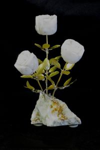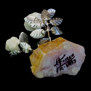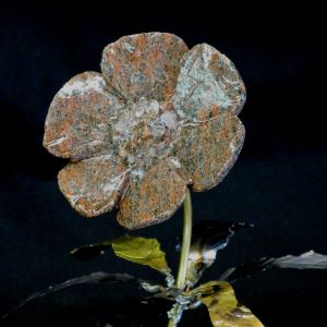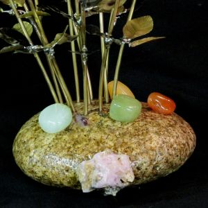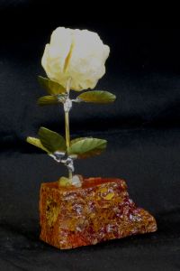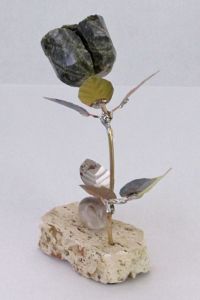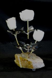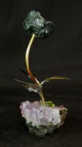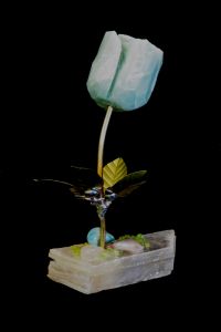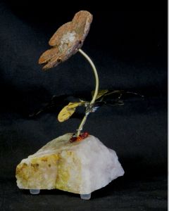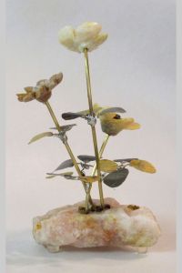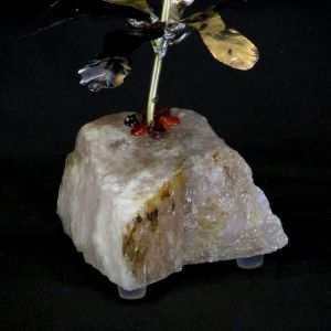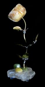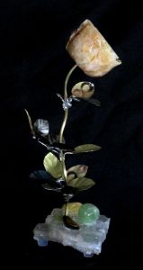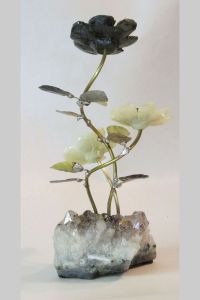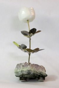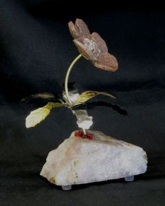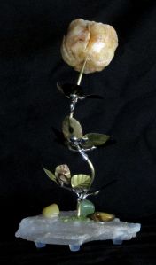 Single blossom on Travertine base with large Smokey Quartz gemstone
