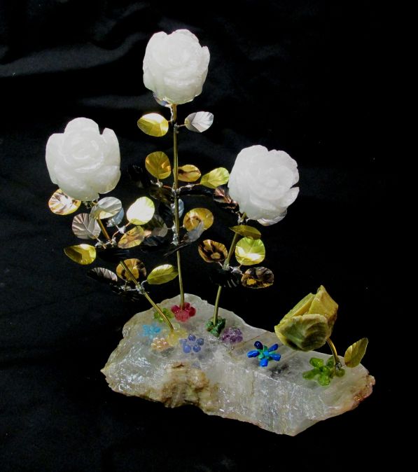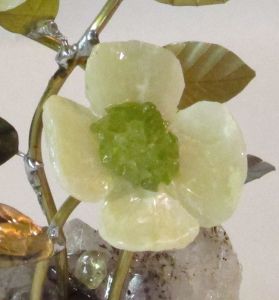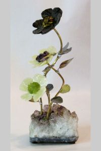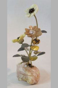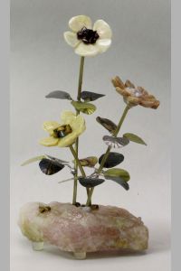 Stone Flower Sculpture Triple Daisy/Impatients With Gemstones #2