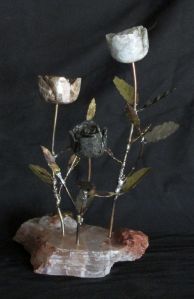 A new earthy elegant triple blossom stone flower sculpture