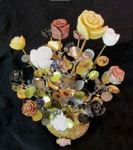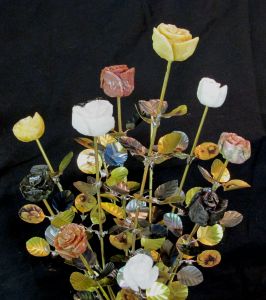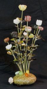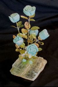 Half Dozen Blue Green Rose Blossom Stone Flower Sculpture