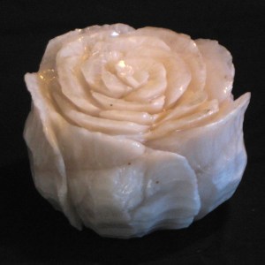 Translucent Alabaster Rose Blossom Stone Flower Sculpture Paperweight……..
