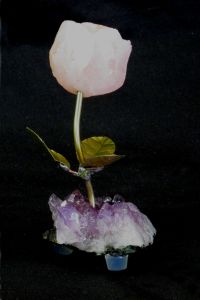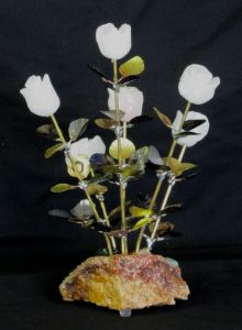 A Half Dozen Rose Blossom Rose Quartz Stone Flower Sculpture