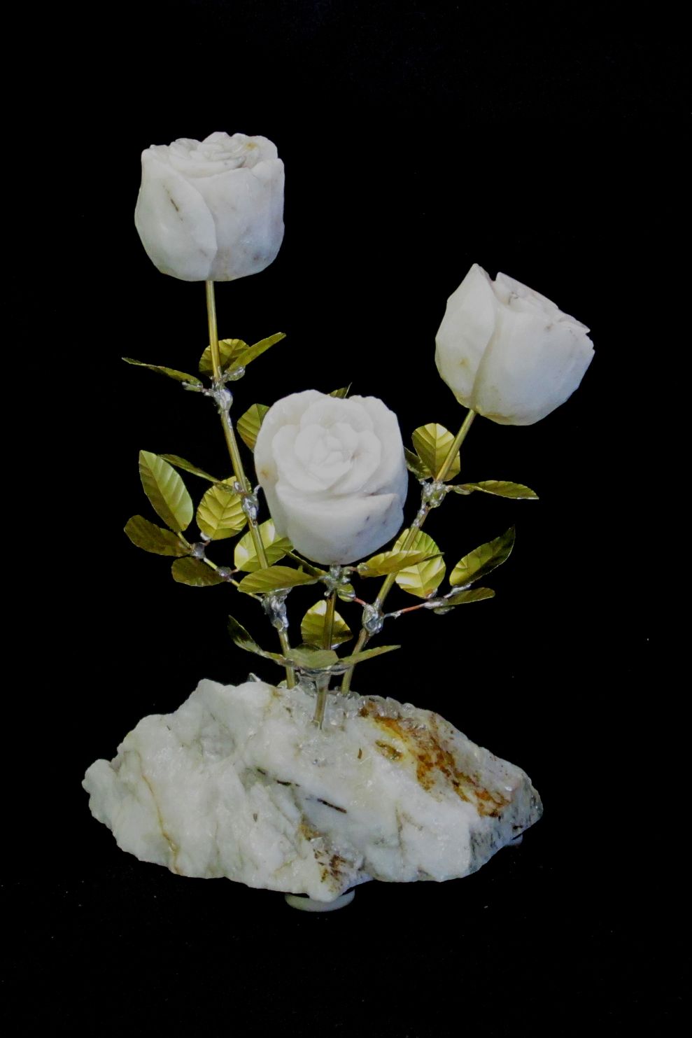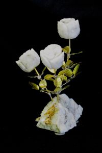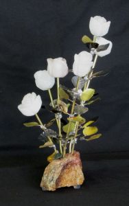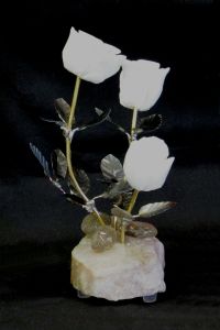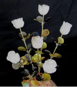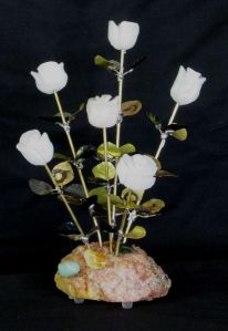 A Dozen Rose Blossom White Quartz Stone Flower Sculpture
