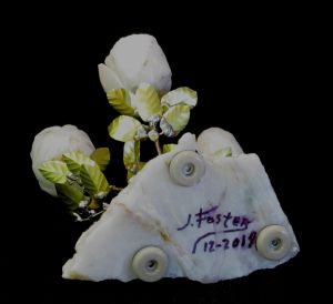 Snow white Quartz Rose on Amethyst geode ……….
